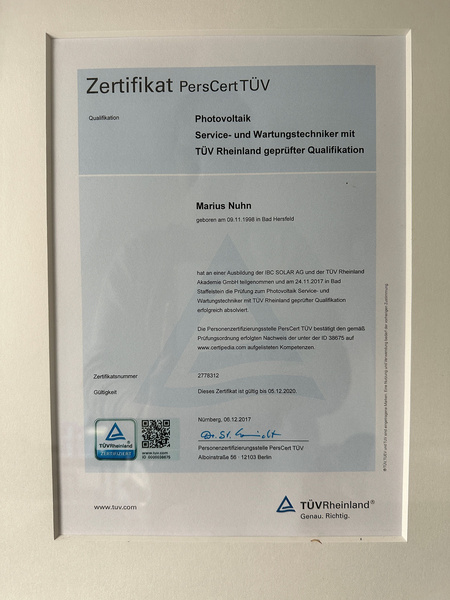Heußner - Nuhn GmbH ist ein für Photovoltaikanlagen zertifizierter Betrieb.